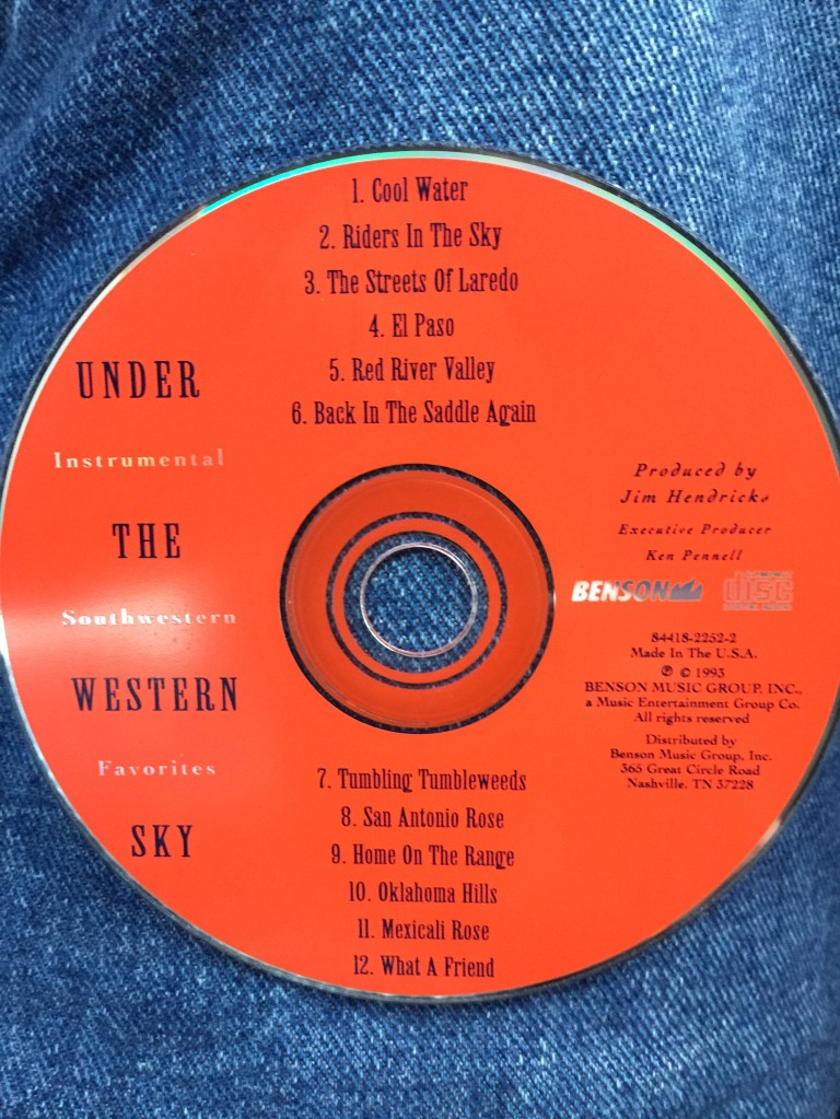 The last CD, Under The Western Sky, was soft cowboy songs on guitars and fiddles that started playing about 6:30 PM.