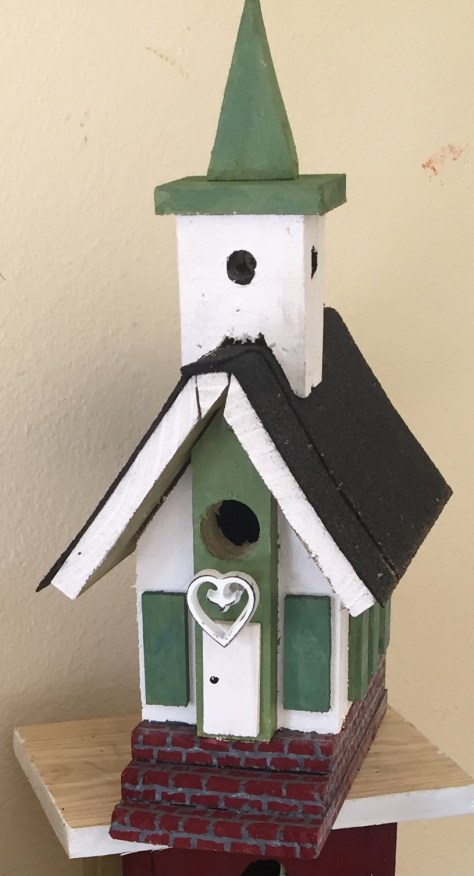 Janet’s was the first bluebird house idea, a church similar to our wedding site.